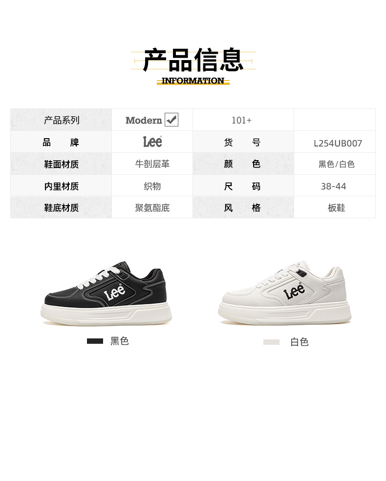 Lee官方厚底板鞋男款2025新款秋季男鞋潮牌高级感增高休闲鞋子男